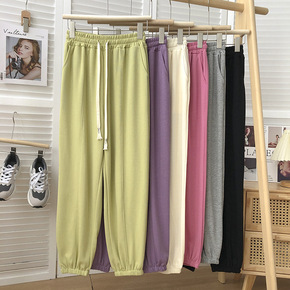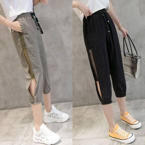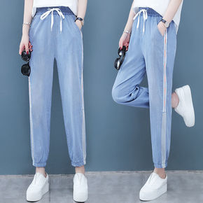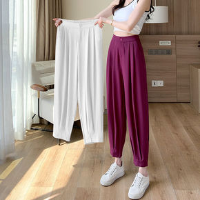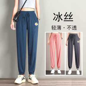夏季薄款休闲裤女夏萝卜裤小个子防蚊裤成人哈伦裤冰丝...