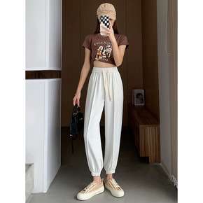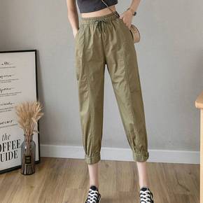 系带松紧高腰束脚哈伦裤女2022年夏季韩版百搭显瘦...