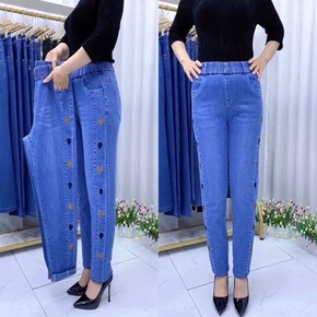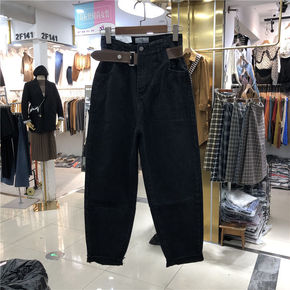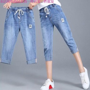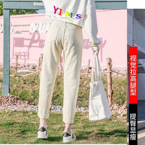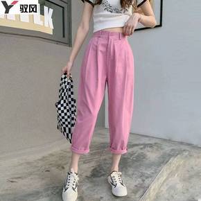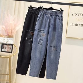网红九分牛仔哈伦裤女2022春季新款大码高腰宽松显...