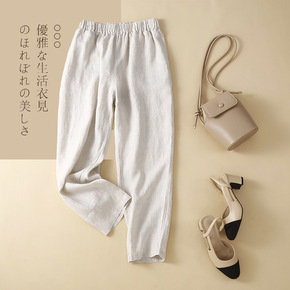 亚麻小脚裤夏季新款休闲裤女麻料宽松显瘦女裤垂感九分...