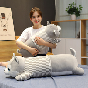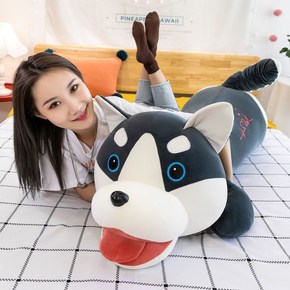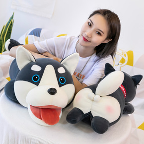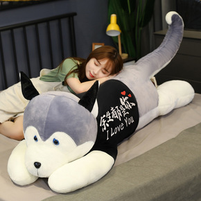 哈士奇毛绒玩具可爱女孩睡觉趴趴狗狗抱枕公仔娃娃条枕...