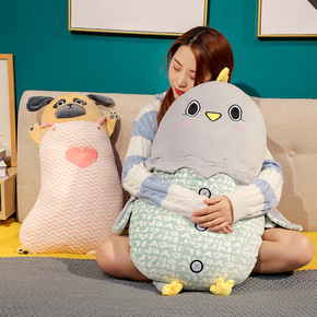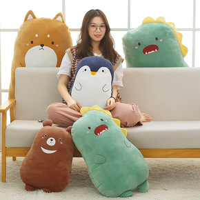 厂家直销可爱卡通奶牛长条抱枕女生生日礼物哈士奇小猪...
