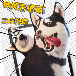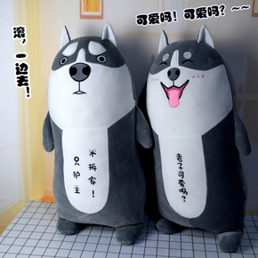 创意表情哈士奇公仔毛绒玩具呆萌二哈女生睡觉抱枕床上...