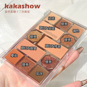 kakashow桃花粉色12色眼影盘大地色棕色眼影...