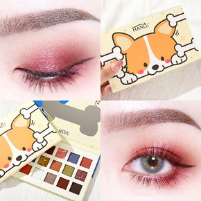 网红同款18色卡通动物眼影珠光哑光闪粉亮片可爱狗狗...