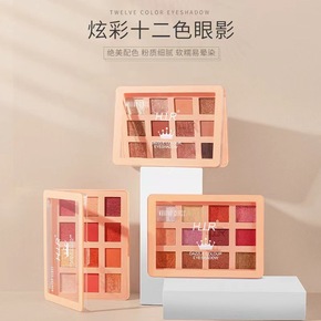 HLLR12色大地眼影盘哑光珠光西柚南瓜色防水不脱...