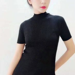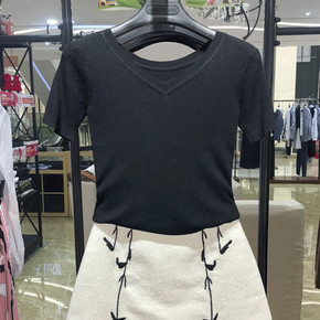 品牌折扣工厂尾货女装2021春夏新款修身针织衫女短...