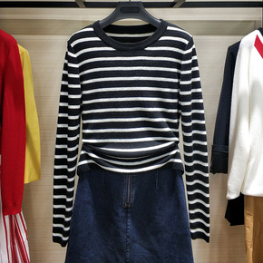 品牌折扣工厂尾货女装2021新款女装春秋黑白条纹修...