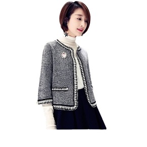 品牌折扣工厂尾货2021春秋新款小香风七分袖针织开...