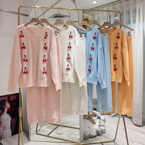 产品类别:套装 面料名称:雪尼尔 风格:甜美 款式:套装 主面料成分:聚酯纤维(涤纶) 主面...