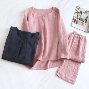 棉质双层纱布套头睡衣套装女四季薄款长袖长裤韩版时绉...