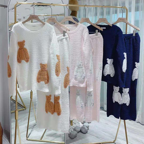 草莓小熊粉色睡衣女春秋冬宽松可爱卡通长袖长裤家居服...