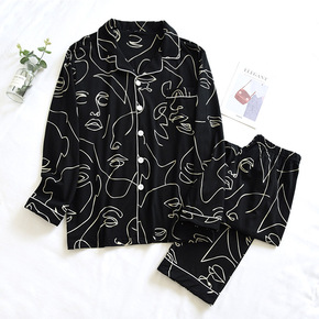 韩国ins睡衣春秋款女2021年新款纯棉日系卡通可...