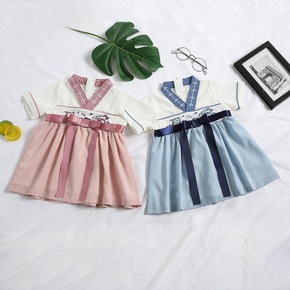 女童汉服中国风宝宝汉服胸前蝴蝶结绣花襦裙婴儿古风小...