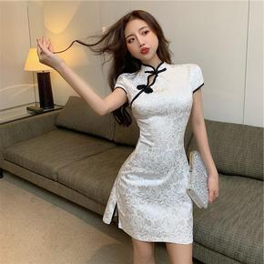 新品中式改良旗袍裙女夏款复古气质立领盘扣文艺长款棉...