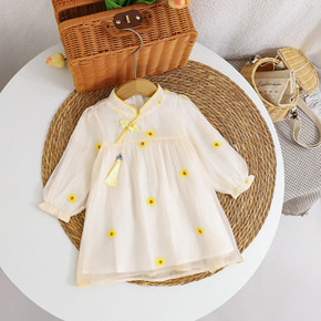 女童连衣裙2022秋装新款小邹菊女宝宝中国风汉服旗...
