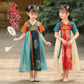 儿童汉服夏装中国风超仙女童雪纺凌月短袖连衣裙古装刺...