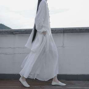 利休白茶 自制禅意盘扣宽松衬衣汉服式白衬衫女中...