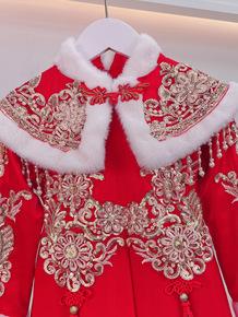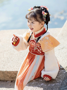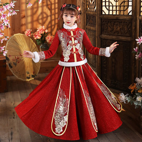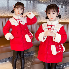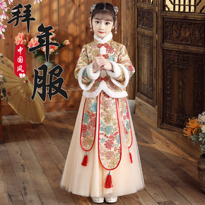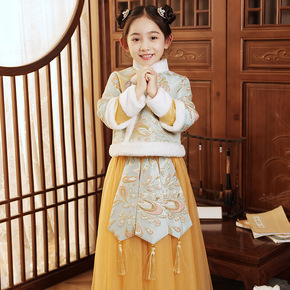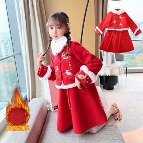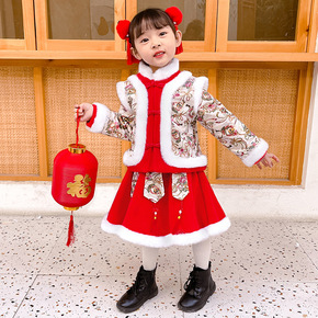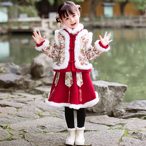 汉服女童冬装新年喜庆衣服中大儿童中国风加绒唐装女孩...
