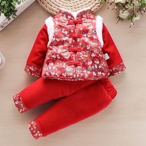 拜年服宝宝女加厚中国风过年唐装女童汉服新年装儿童棉...