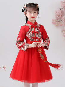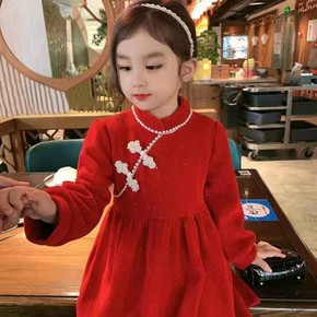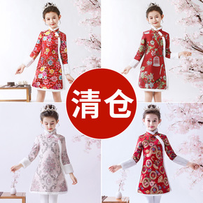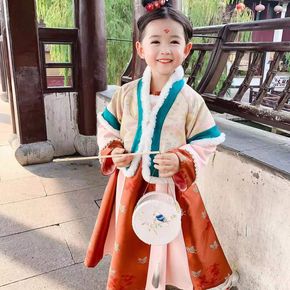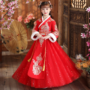 汉服女童冬装中国风加厚唐装儿童连衣裙古装小女孩喜庆...