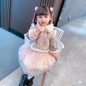 唐装女童冬季儿童汉服加绒中国风新年装女宝宝拜年服加...