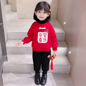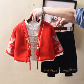 儿童中国风女童冬新年卫衣套装汉服男童唐装中小童加绒...