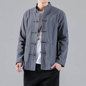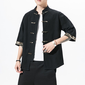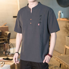 风夏季唐装上衣男青年短袖汉服僧服居士服禅修服茶人服...
