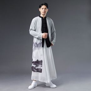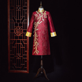 中式伴郎团礼服立领长衫刺绣古装民国男青年唐装相声服...