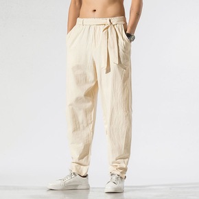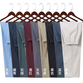 唐装汉服夏季中国风薄款亚麻分棉麻裤宽松小脚麻料男裤...