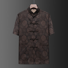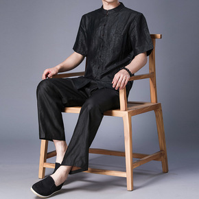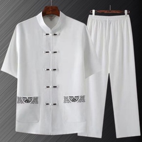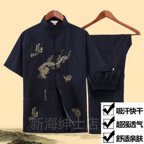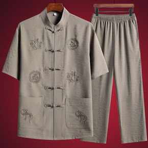 夏季中老年短袖唐装套装男休闲太极居士服爷爷套装中国...