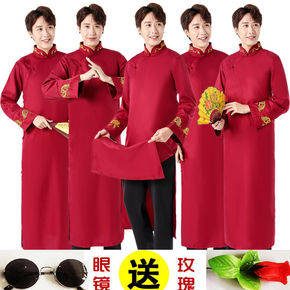 中式伴郎服婚礼结婚兄弟团大褂礼服搞笑相声服长衫中国...