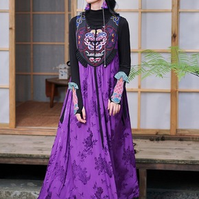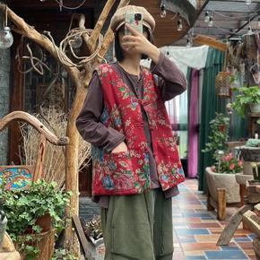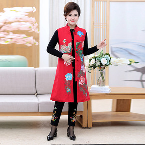 中老年女早春秋薄款马甲中长款妈妈装绣花唐装坎肩棉背...