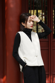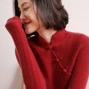 复古中式气质立领盘扣套头针织衫女2021新款蕾丝衫...