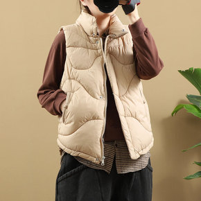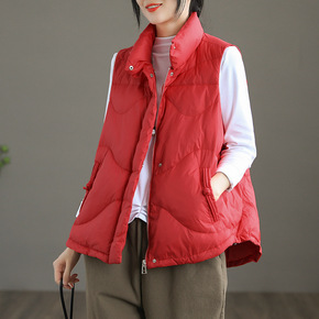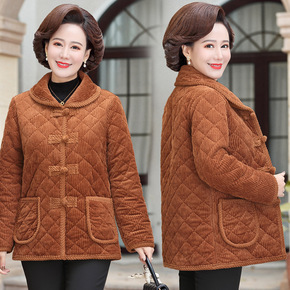 妈妈装秋冬新款民族风加绒加厚马甲中老年灯芯绒纯色复...