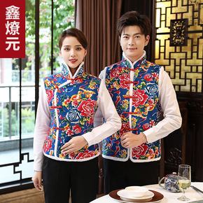 农家乐东北大花布酒店餐饮火锅店服务员工作服棉马甲背...
