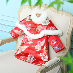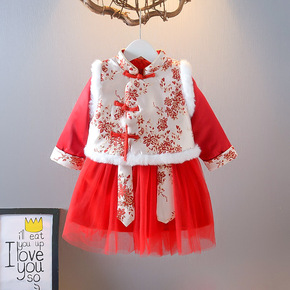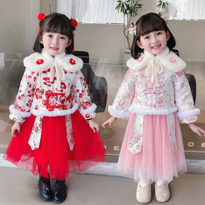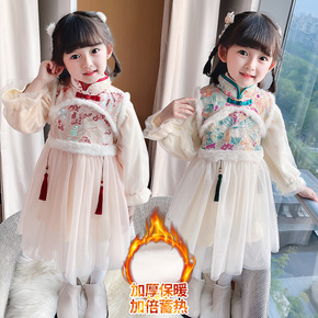 儿童拜年服加厚喜庆汉服女童古装中国风冬季新款公主裙...