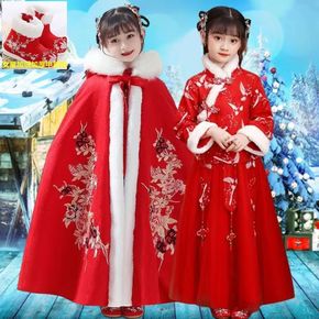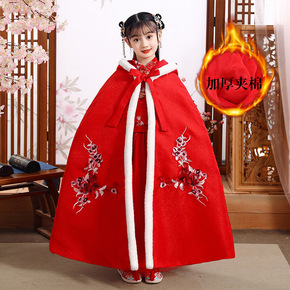 儿童汉服斗篷2021中国风红色加厚刺绣古风披风女童...