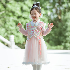 女童亮片马甲流苏纱裙年服2021冬季新品女宝宝古风...