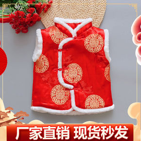 元旦节中国风表演服儿童唐装马甲演出服20新年红色背...
