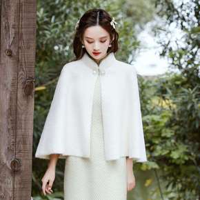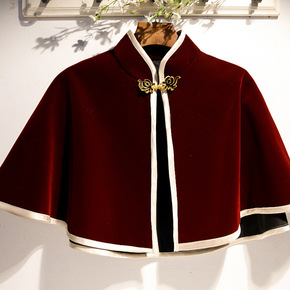 新款2021秋冬女士立领复古套头披肩 百搭宽松复古...