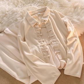 韩系温柔上衣两件套盘扣Polo翻领不规则卫衣女春秋...