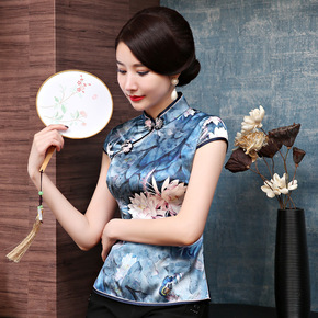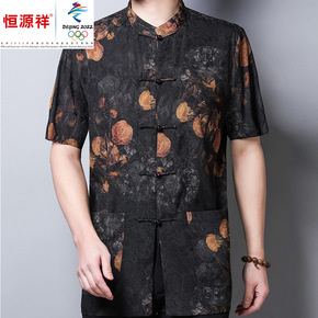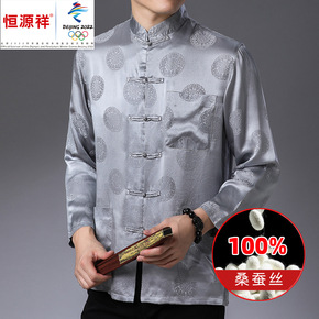 恒源祥100%桑蚕丝唐装中老年高档提花纯色上衣衬衫...