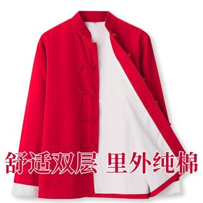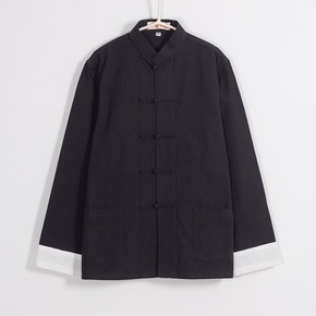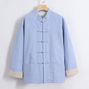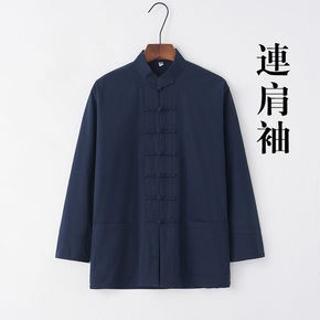 中式连肩袖男装唐装男长袖上衣复古风盘扣中国风中老年...