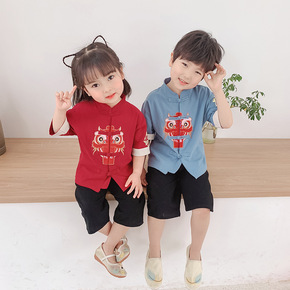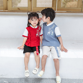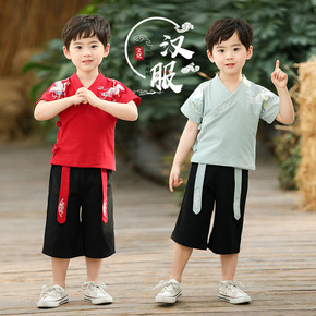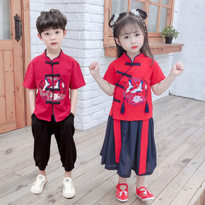 唐装中国风古装汉服夏装短袖套装六一儿童节表演服合唱...