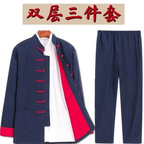 唐装男套装中式茶服男棉风古装中老年双层三件套中国风...
