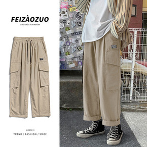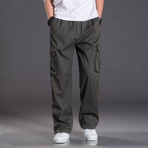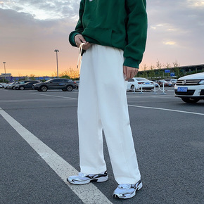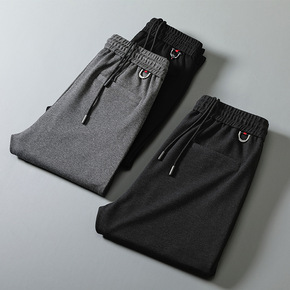 夏季新款男士休闲裤高腰中青年纯色男装裤子直筒宽松商...