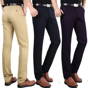 纯色秋冬季男士休闲裤棉弹力直筒宽松商务高腰男西裤加...