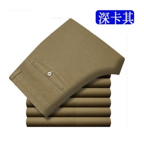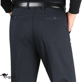 珀基袋鼠厚款中年男式弹力休闲裤中老年高腰直筒商务休...