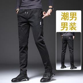 新款男士休闲裤韩版小脚小西裤时尚青年男装长裤弹力商...